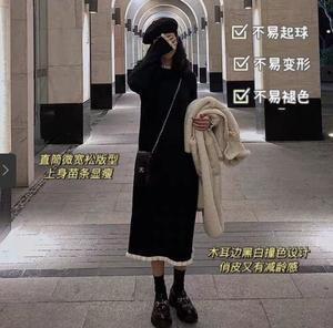 • Tên sản phẩm :Hepburn style little black dress nữ mùa thu đông mới kiểu Pháp với áo len váy dài quá gối váy dệt kim chân váy dài