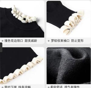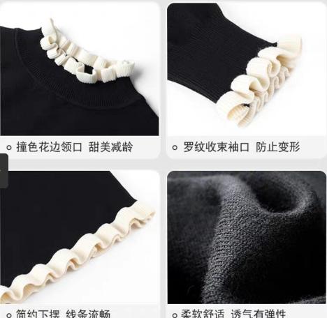 • Kiểu dáng : Váy len xuông đen với các điển nhẫn bèo trắng ở tay và chân váy