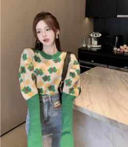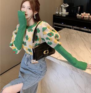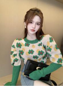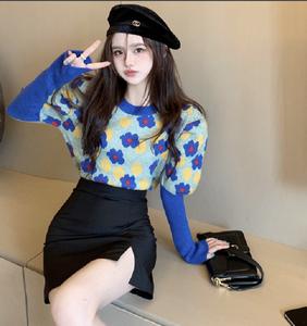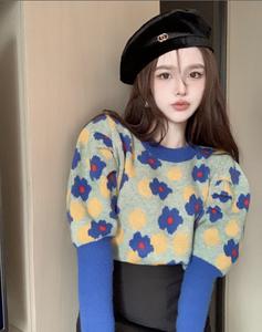 Áo len hoa hàn quốc với thân ngắn chất vải len vừa phải giữ ấm tốt và màu sắc kết hợp hài hòa