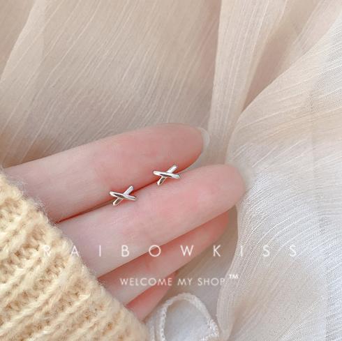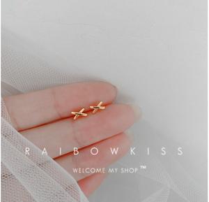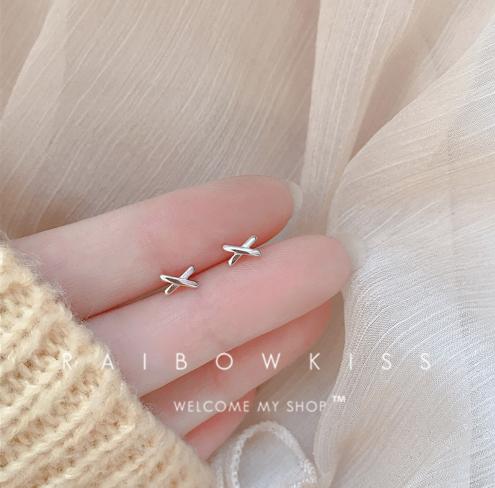 • Hoa tai chữ X nữ cao cấp ý nghĩa khí chất hoa tai chữ thập thiết kế ngách lưới hoa tai sinh viên nhỏ màu đỏ đơn giản