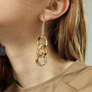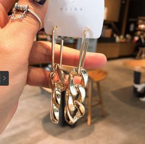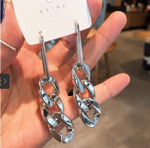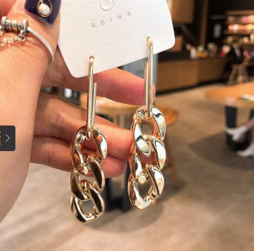 Hoa tai mắt xích phong cách đầy cá tính với 2 màu bạc và vàng
