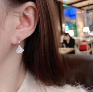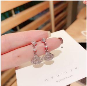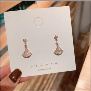 • Hoa tai hình quạt mới 2019 của Hàn Quốc hoa tai nữ lưới màu đỏ đầy khí chất kim cương Hoa tai dài hợp thời trang hoa tai kim bạc thích hợp