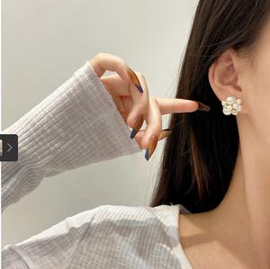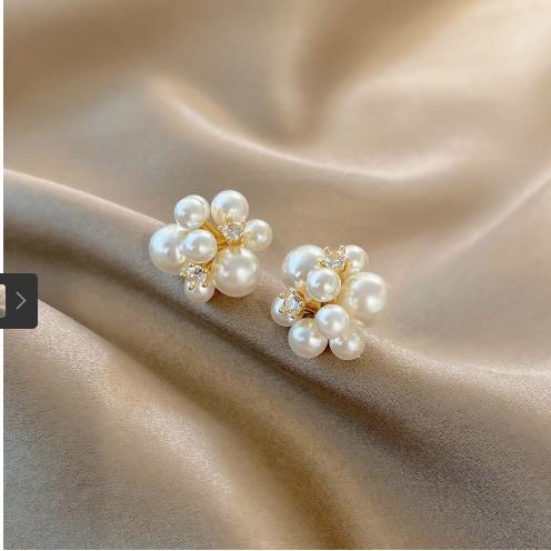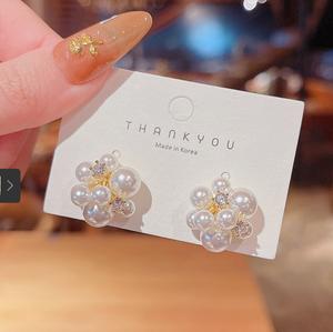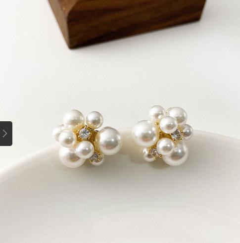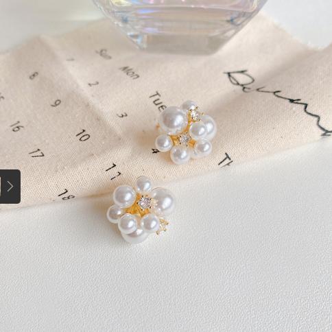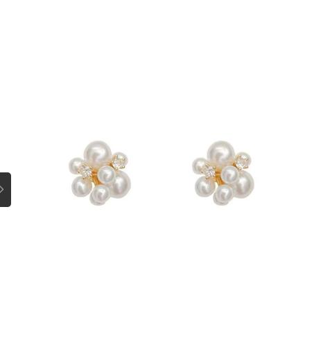 Khuyên hoa ngọc trai được xếp từ các hạt ngọc trai nhỏ và vài điểm nhấn từ đá làm lấp lánh đôi khuyên tai