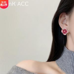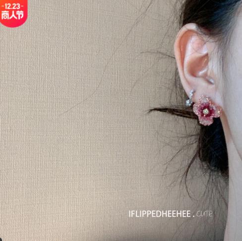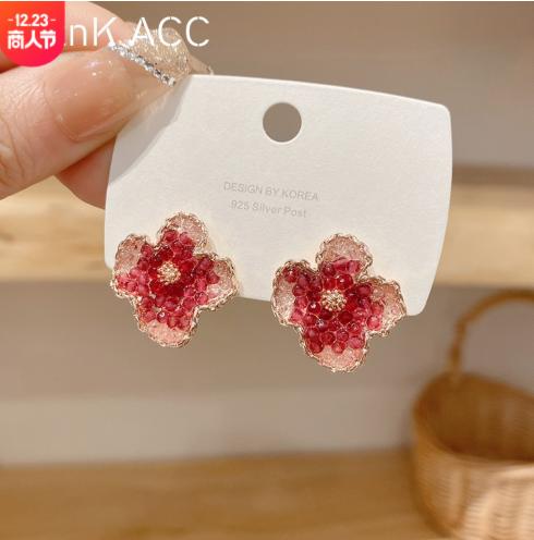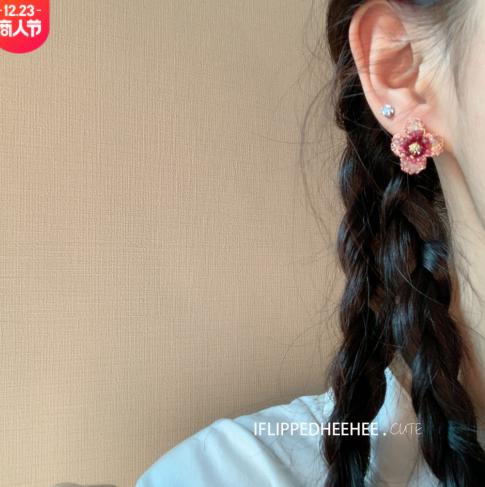 Hoa tai pha lê màu đỏ hoa tai nữ làm bằng tay gradient màu hồng tím chuỗi hoa nhỏ dễ thương nhẹ nhàng hoa tai nữ bông tai