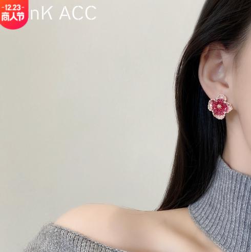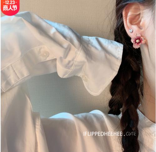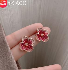 • Hoa tai pha lê màu đỏ hoa tai nữ làm bằng tay gradient màu hồng tím chuỗi hoa nhỏ dễ thương nhẹ nhàng hoa tai nữ bông tai
