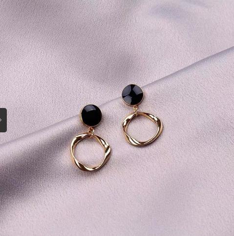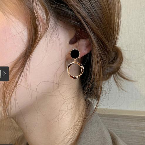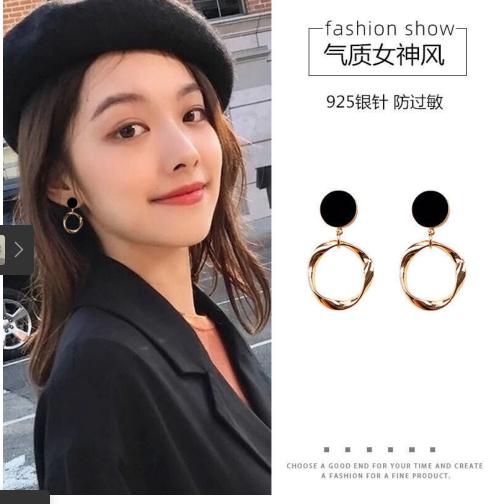 Tên sản phẩm : Hoa tai vòng tròn Hàn Quốc nữ 2021 tính khí mới hoa tai hình học thời trang ý nghĩa cao xu hướng hoa tai đen hoang dã