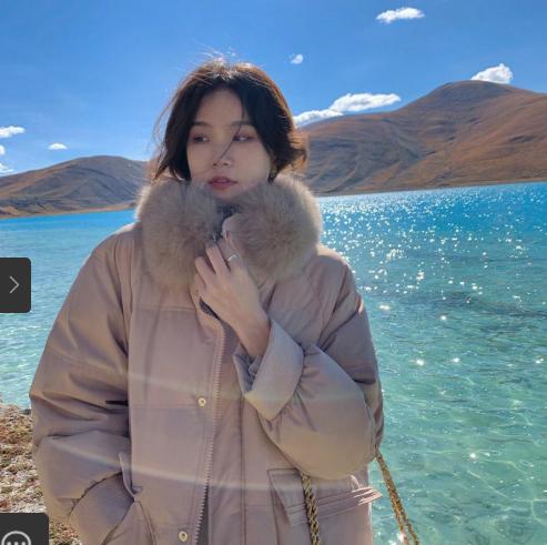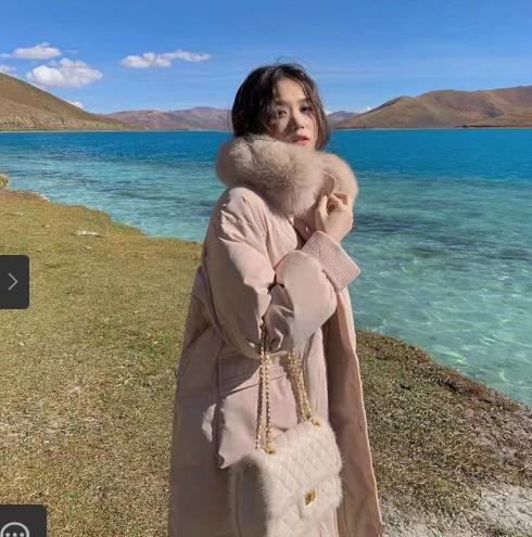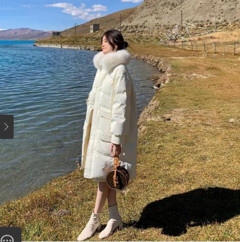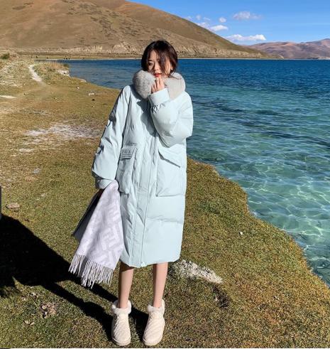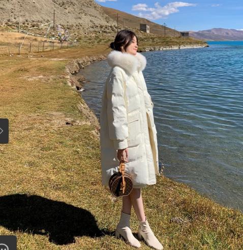 Áo phao thân dài với mũ có lông mịn cao cấp