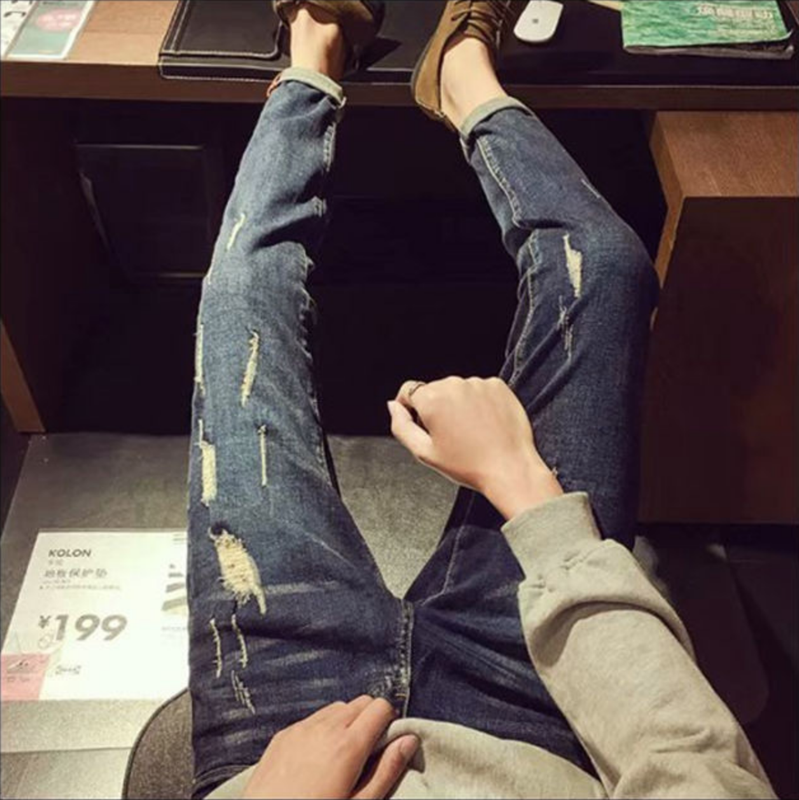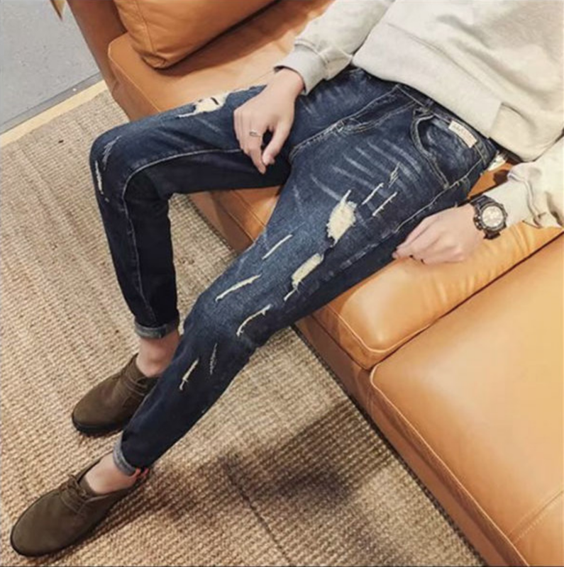 • Mô tả sản phẩm : quần jean ống xuông rách đầu gối với phong cách bụi bặm