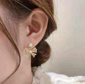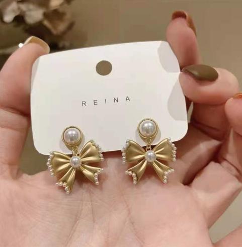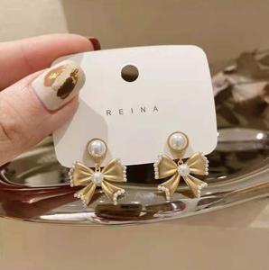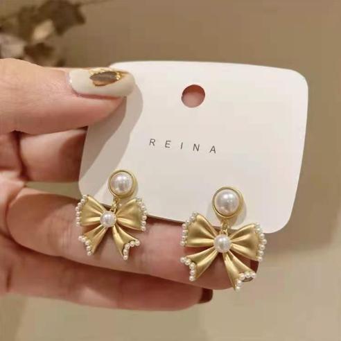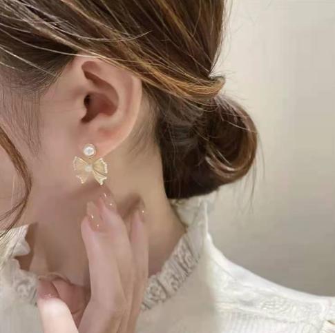 • Khí chất Hàn Quốc bông tai ngọc trai nơ lưới màu đỏ retro bông tai nhỏ hương thơm bông tai cao cấp 2021 làn sóng mới