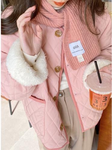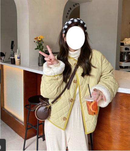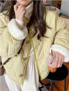 Áo khoác bông với cổ trong phiên bản dáng ngắn với màu sắc xinh xắn tiểu thư