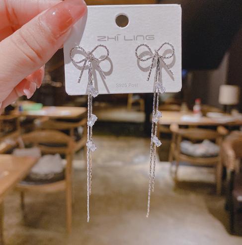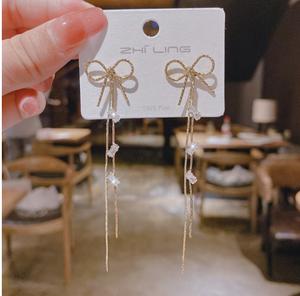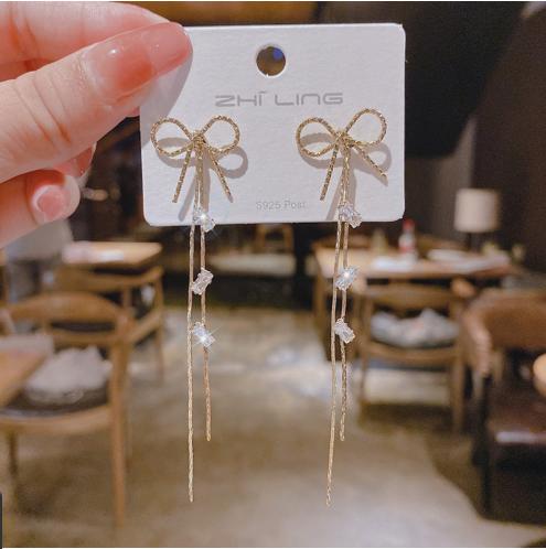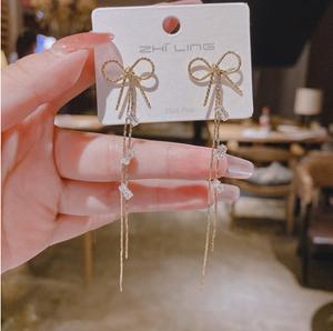 Hoa tai dây nơ vơi đính đá sáng lấp lánh đơn giản mà sang trọng