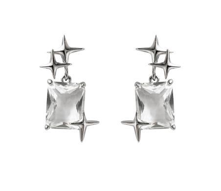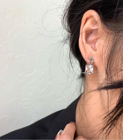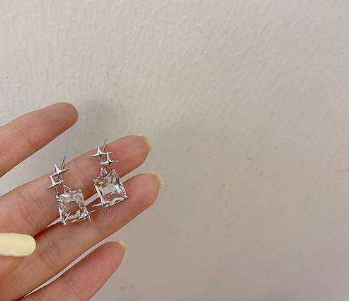 • Kim bạc Siêu tiên Ngôi sao sáu cánh Siêu chớp nhoáng Hình vuông Zircon Hoa tai đinh tán Khí chất đơn giản Hoa tai Ins của Hàn Quốc