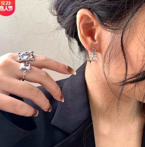 925 Bạc Kim Dầu Thả Dầu Hoa Tai Vuông Hàn Quốc Dongdaemun Tính Khí Đơn Giản Hoa Tai Stud Đơn Giản Cá Tính Cổ Điển Hoa Tai Nữ Mùa Thu Đông