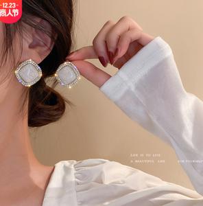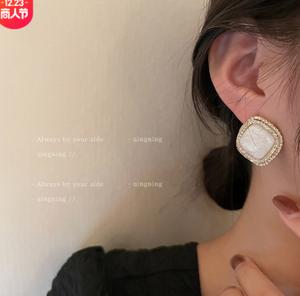 925 Bạc Kim Dầu Thả Dầu Hoa Tai Vuông Hàn Quốc Dongdaemun Tính Khí Đơn Giản Hoa Tai Stud Đơn Giản Cá Tính Cổ Điển Hoa Tai Nữ Mùa Thu Đông