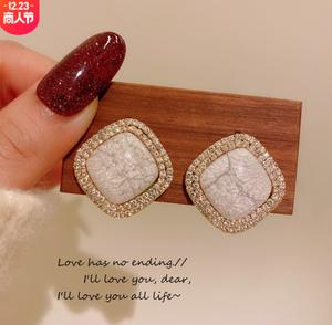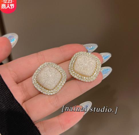 • Màu be đá nứt đôi bông tai rhinestone bông tai nhỏ thơm gió nhấp nháy bông tai kim cương nữ bạc kim cao cảm giác bông tai