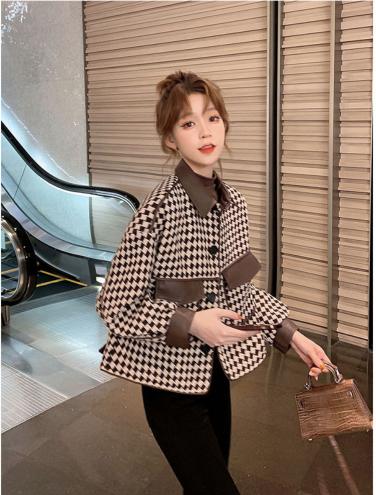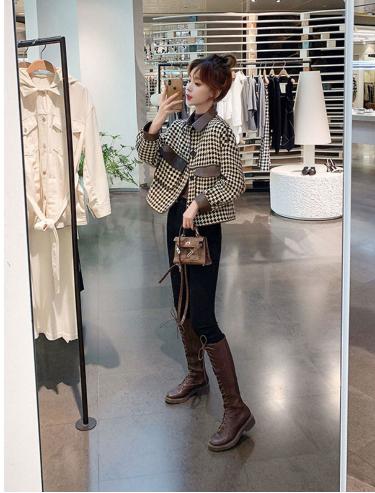 • Mùa thu và mùa đông 2021 mới houndstooth gió thơm nhỏ áo khoác ngắn nữ tính khí nhỏ phù hợp tất cả các niche top