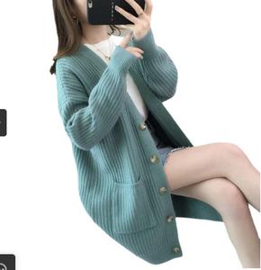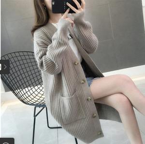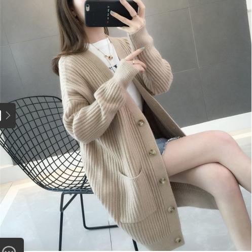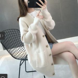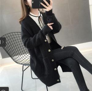 • Mùa thu và mùa đông 2021 phong cách mới rất cổ tích áo len cổ V áo khoác nữ Thời trang Hàn Quốc áo len đan rời áo len cardigan dài giữa