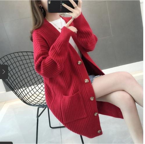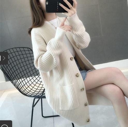 • Tên sản phẩm : Mùa thu và mùa đông 2021 phong cách mới rất cổ tích áo len cổ V áo khoác nữ Thời trang Hàn Quốc áo len đan rời áo len cardigan dài giữa