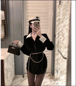 Mùa thu và mùa đông 2021 thiết kế mới của Hàn Quốc cảm giác thích hợp về cảm giác cao của áo sơ mi kết hợp tất cả các kết hợp áo sơ mi nhung đen dài giữa phụ nữ
