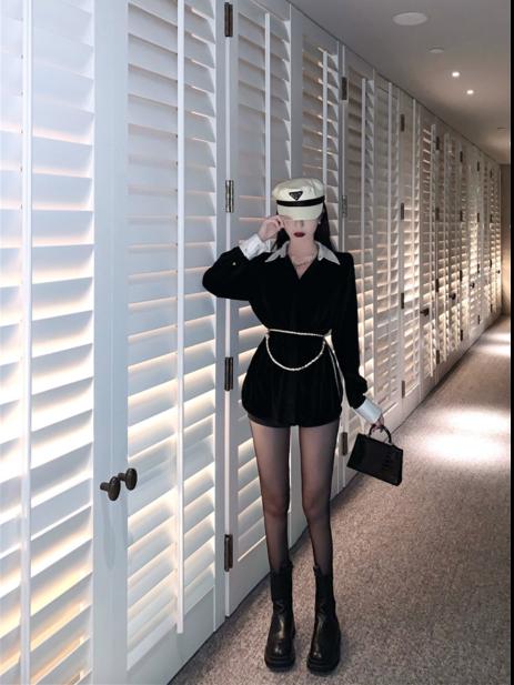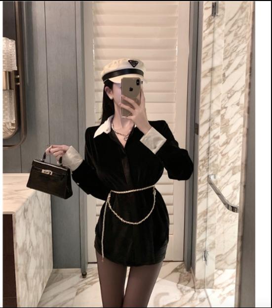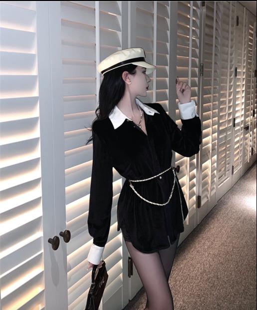 • Mùa thu và mùa đông 2021 thiết kế mới của Hàn Quốc cảm giác thích hợp về cảm giác cao của áo sơ mi kết hợp tất cả các kết hợp áo sơ mi nhung đen dài giữa phụ nữ