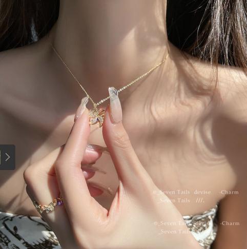 mặt dây chuyên được đính đá sáng làm nổi bật cổ