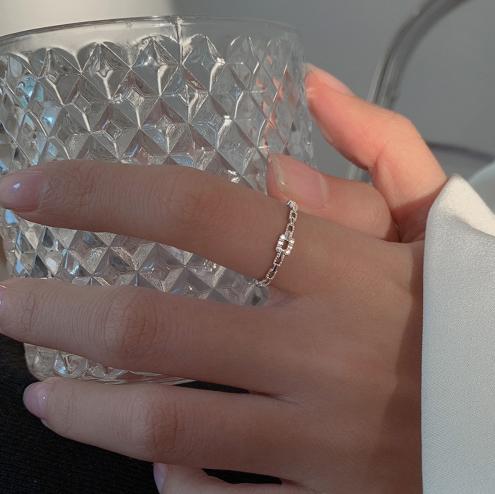 Nhẫn dây chuyền kim cương vuông nữ thời trang khảm vi kim nhẫn zircon thiết kế thích hợp kiểu Hàn Quốc đeo nhẫn ngón trỏ có thể điều chỉnh độ mở