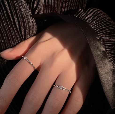 • Nhẫn dây chuyền kim cương vuông nữ thời trang khảm vi kim nhẫn zircon thiết kế thích hợp kiểu Hàn Quốc đeo nhẫn ngón trỏ có thể điều chỉnh độ mở