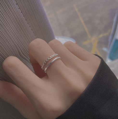 Nhẫn trơn hai lớp nhẫn nữ đơn giản nhẹ nhàng sang trọng niche 2021 nhẫn thiết kế mới trong gió lạnh