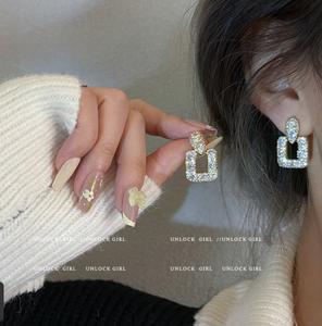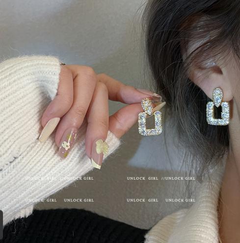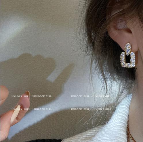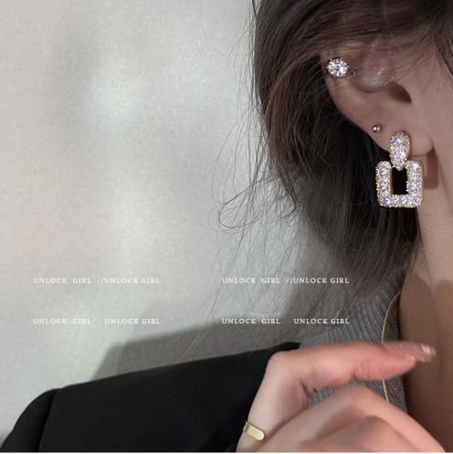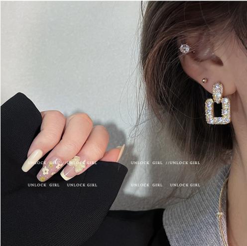 Nhấp nháy kim cương vi dát zircon hình học hoa tai kim cương vuông hoa tai nữ cao cấp khí chất nhẹ thiết kế sang trọng hoa tai nữ