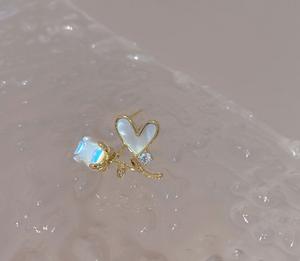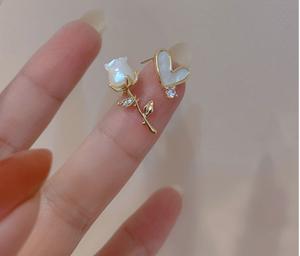 Pháp hoa hồng trắng hoa hồng cổ điển hoa tai nhỏ tinh tế yêu thích hoa tai bất đối xứng phụ nữ Hoa tai