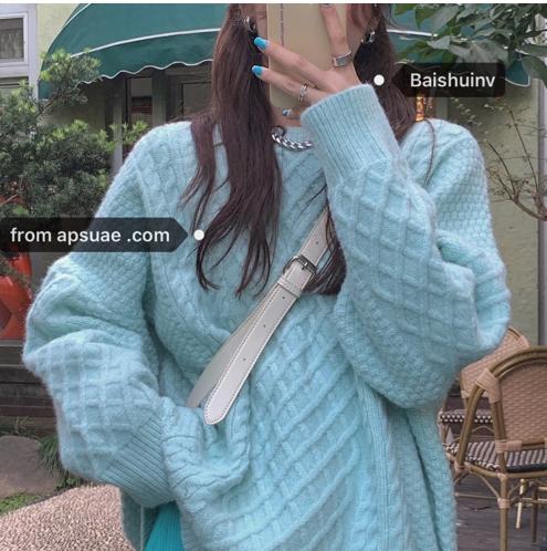 Tên sản phẩm : Phong cách cổng retro mềm mại màu xanh sữa áo len nữ mùa thu và đông Nhật Bản phong cách lười biếng hàng rào phong cách năm 2021 mới mặc ngoài rộng rãi