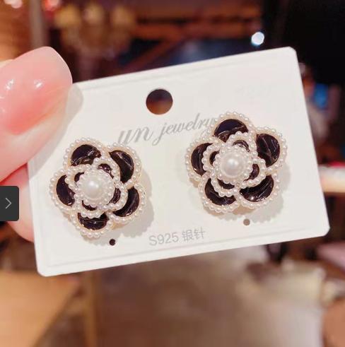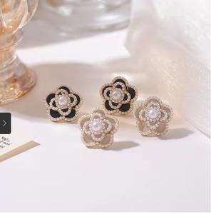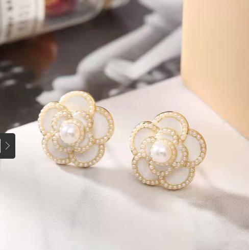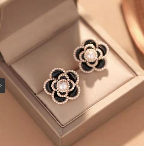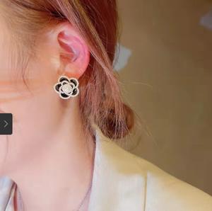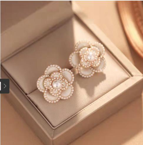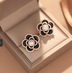 Khuyên tai hoa trà phong cách của chanl.. đã quý phải còn đính các hạt ngoc trai nhỏ càng thêm nổi bật