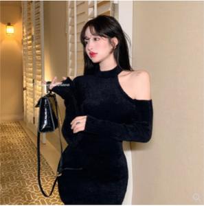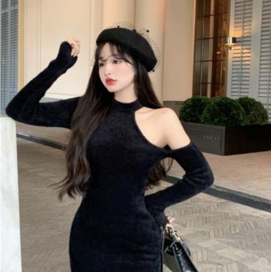 • Phong cách mới với mong muốn tinh khiết màu đen dài tay váy dệt kim quây váy cô gái hông váy thu đông 2021 quần áo phụ nữ