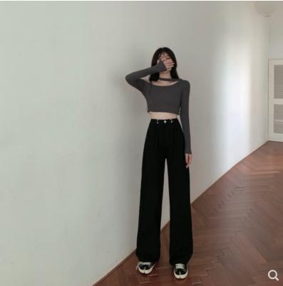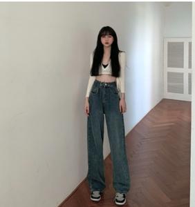 Quần bò ống rộng eo cao