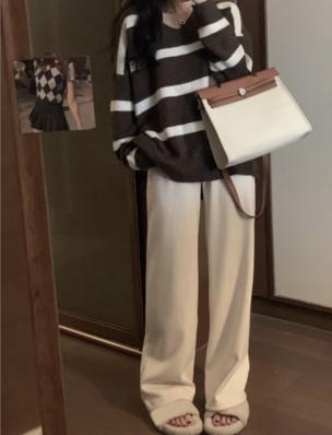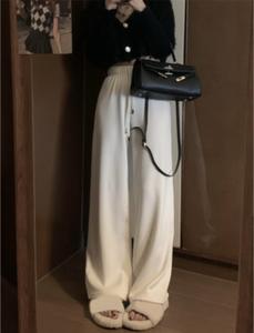 quần ống rộng màu trắng mùa thu kết hợp quần áo dễ dàng thoải mái