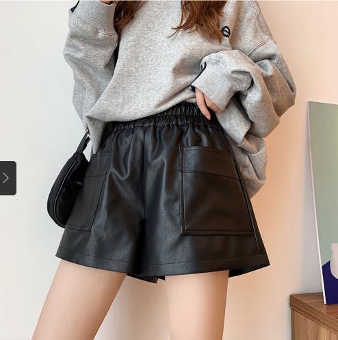 Quần short da PU ống rộng có cả phiên bản trần bông những chiếc quần short da trơn là phụ kiện không thể thiếu trong tủ đồ các cô nàng vào mùa đông