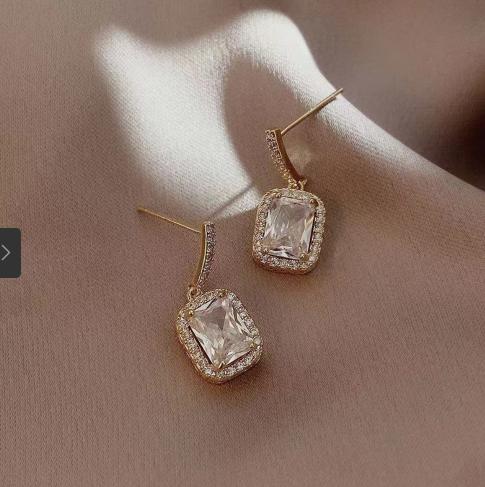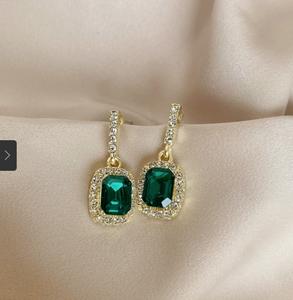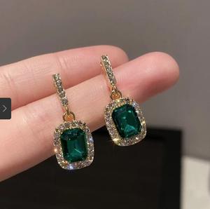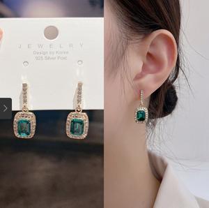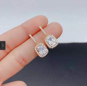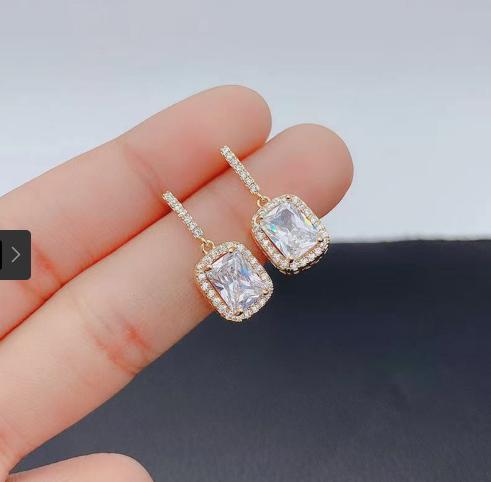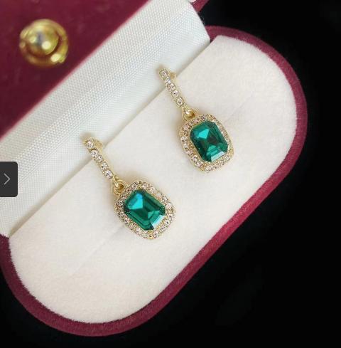 Khuyên tai đơn giản vuông với kim cương xanh và vàng