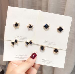 Tên sản phẩm : S925 bạc kim tam giác hình học bông tai đen hoang dã nữ tính cách hàn quốc hoa tai thiết kế đơn giản xu hướng