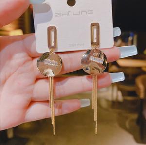925 bạc kim dài tua hoa tai phóng đại cá tính mạng người nổi tiếng khí chất cao cấp hoa tai tua hoa tai mỏng nữ