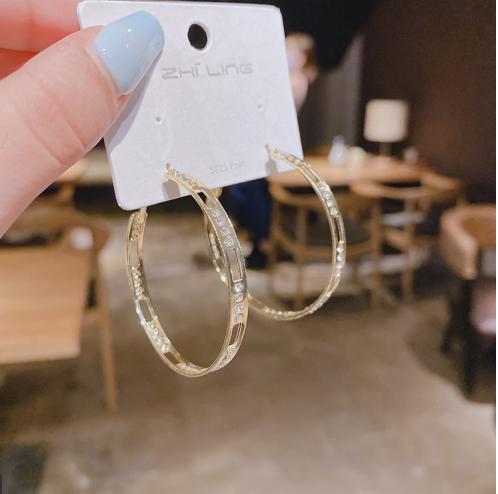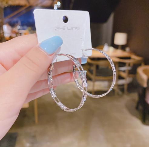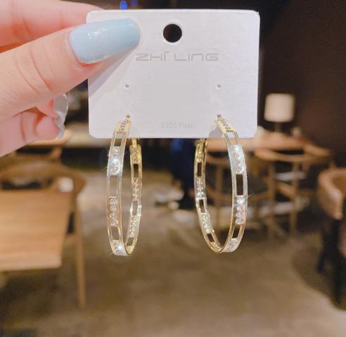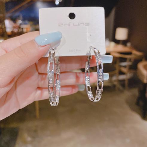 • S925 kim bạc đơn giản cá tính phóng đại nhấp nháy kim cương vuốt dây chuyền uốn lượn vành tai tính khí bông tai trang sức khuyên tai 2021 xu hướng mới