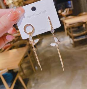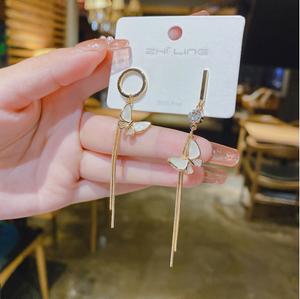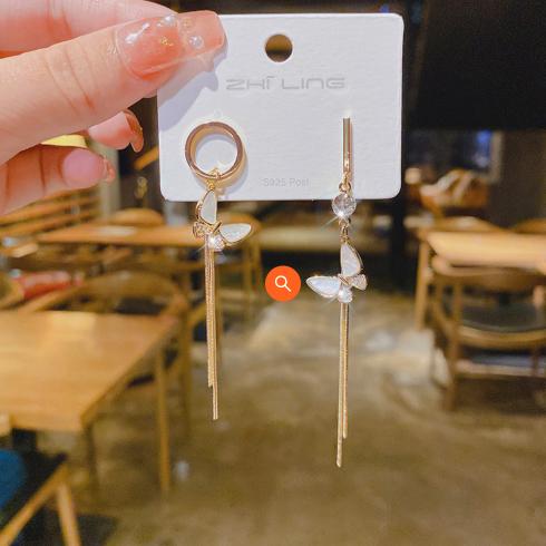S925 kim bạc Hàn Quốc Dongdaemun bông tai bướm bất đối xứng nữ mạng màu đỏ tính khí siêu tiên 2021 bông tai mới