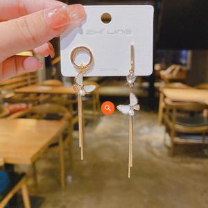 2021 mới hoa tai opal hợp thời trang tai trang sức khí chất hàn quốc thời trang siêu flash tua hoa tai dài móc tai