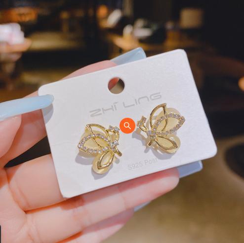 Bông tai hình bướm được đính đá pha lê và đính đá lấp lánh
