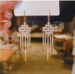2021 mới hoa tai opal hợp thời trang tai trang sức khí chất hàn quốc thời trang siêu flash tua hoa tai dài móc tai