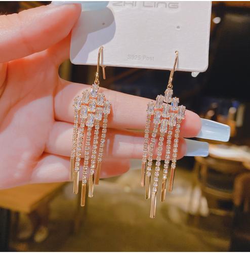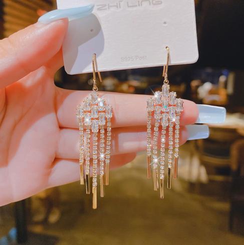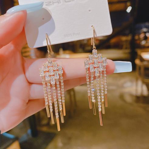 925 bạc kim dài tua hoa tai phóng đại cá tính mạng người nổi tiếng khí chất cao cấp hoa tai tua hoa tai mỏng nữ