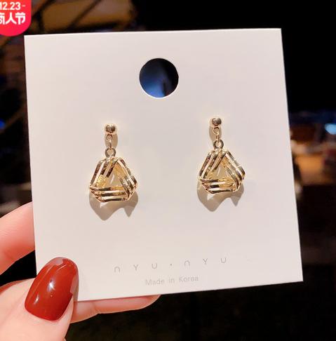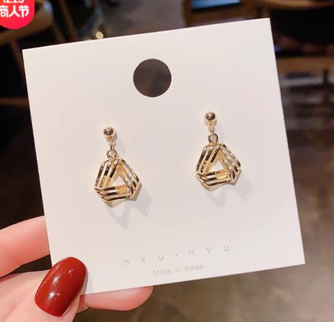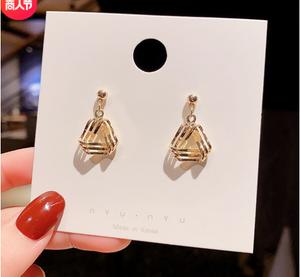S925 Kim Bạc Hàn Quốc Hoa tai Tam giác kim loại Retro Cá tính Nữ Cá tính Gió lạnh Hoa tai Đinh tán Hoa tai Cửa hàng trang sức