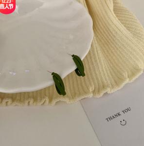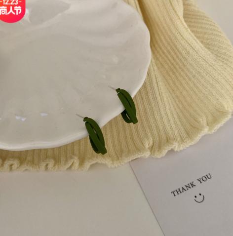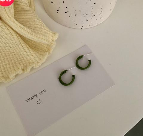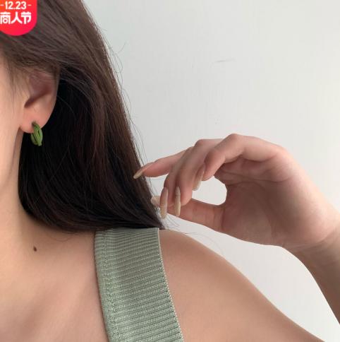 S925 kim bạc Hồng Kông phong cách mờ tính khí bông tai đơn giản chữ C tươi màu xanh lá cây hợp thời trang bông tai thời trang trong gió bông tai EXTEN