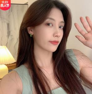• S925 kim bạc Hồng Kông phong cách mờ tính khí bông tai đơn giản chữ C tươi màu xanh lá cây hợp thời trang bông tai thời trang trong gió bông tai EXTEN
