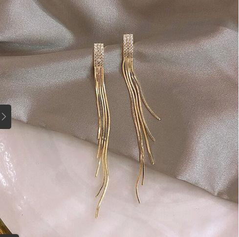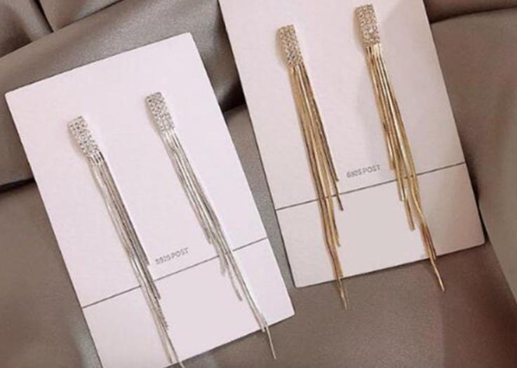 khuyên tai dài đính đá phân trên làm nổi bật với những bộ váy bạn diện hoặc là những chiếc áo khoác dạ với áo lông