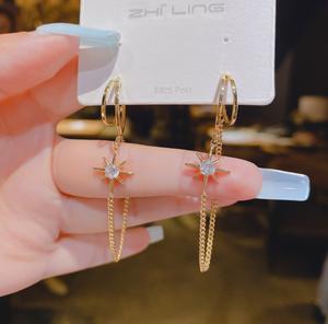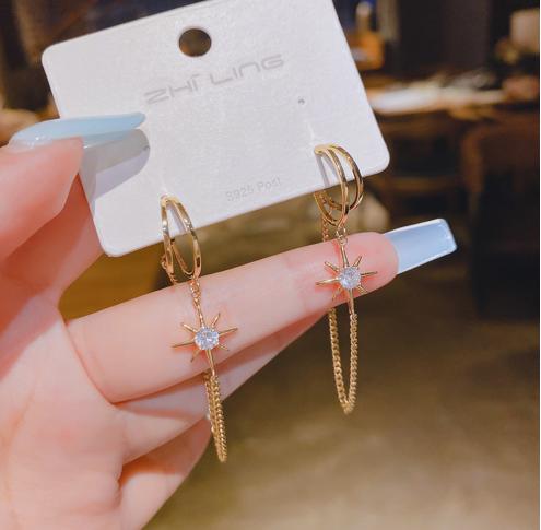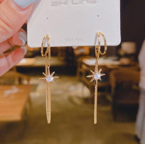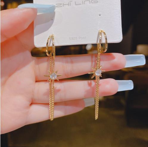 s925 kim bạc Nhật Bản và Hàn Quốc khí chất vi khảm ngọc trai awn ngôi sao tua hoa tai nữ hoa tai hoang dã tinh tế ánh sáng thiết kế sang trọng cảm giác